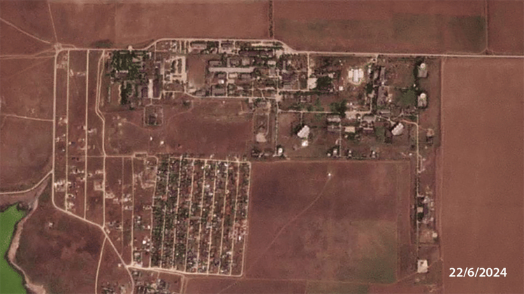 Ảnh vệ tinh chụp ngày 24/6 cho thấy vết cháy sém mới tại khu vực ngoài trời của trạm liên lạc không gian NIP-16 và dãy 8 ăng-ten chảo cách đó không xa về phía đông gần thị trấn Vitino,phía tây bán đảo Crimea.