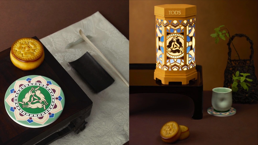 Lấy cảm hứng từ đèn lồng,Tod's giới thiệu quà tặng hình ba chú thỏ chung tai. Hộp quà có ba lớp: bánh Trung thu,đế lót ly và cốc sứ. Họa tiết thỏ trên đèn lồng tượng trưng cho cuộc sống bền vững,may mắn. Vogue đánh giá thiết kế chu đáo và thanh lịch. Loewe tạo ra con quay bằng tre,trò chơi cờ vây đi kèm những chiếc bánh tối giản mang hình logo của hãng.