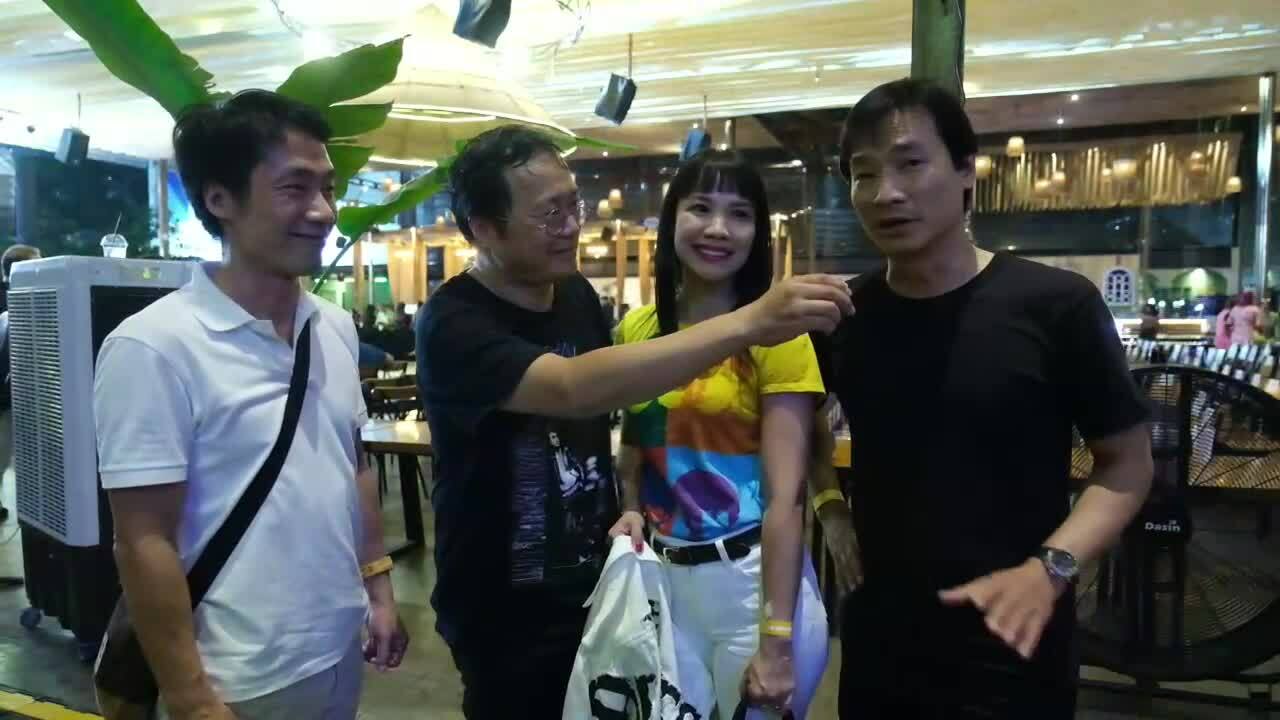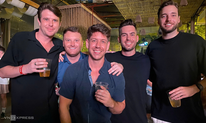 Nicholas Rowe (giữa) và bạn bè đến show nhạc của The Bootleg Beatles tại TP HCM. Ảnh: Quế Chi