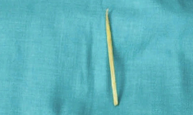 Dị vật xiên que được lấy ra ngoài. Ảnh: Bệnh viện cung cấp