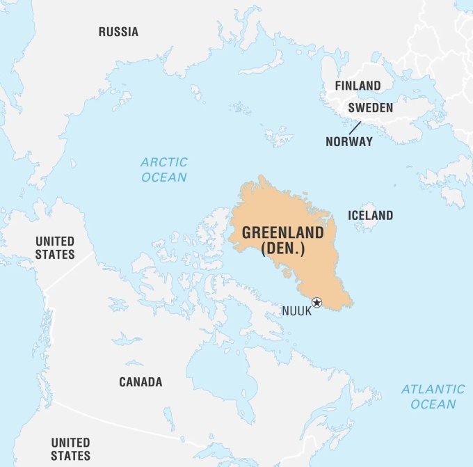 Greenland là đảo lớn nhất thế giới,nằm gần Bắc Mỹ,giữa Đại Tây Dương và Bắc Băng Dương. Đảo 57.000 dân có diện tích khoảng 2,16 triệu km2,rộng hơn Mexico và gấp hơn ba lần bang Texas của Mỹ.