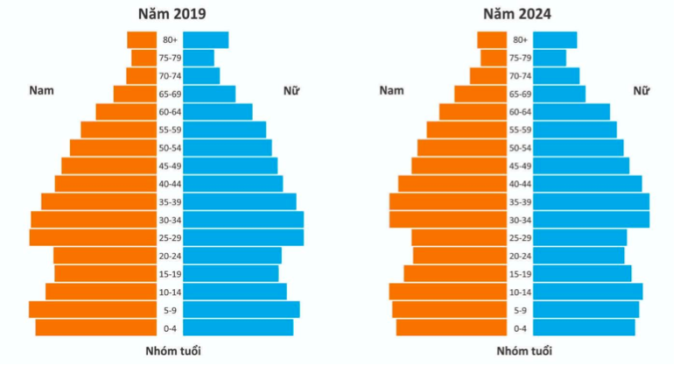 Tháp dân số Việt Nam năm 2019-2024. Ảnh: Tổng cục thống kê