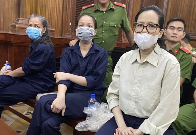 Bị cáo Phạm Thị Tuyết Nhung và đồng phạm. Ảnh: Hải Duyên