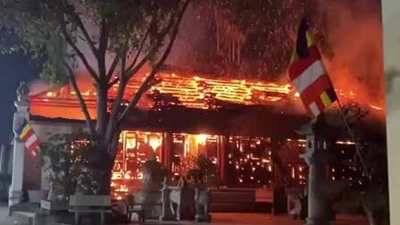 Chùa Vẽ bị cháy. Video: Bắc Giang
