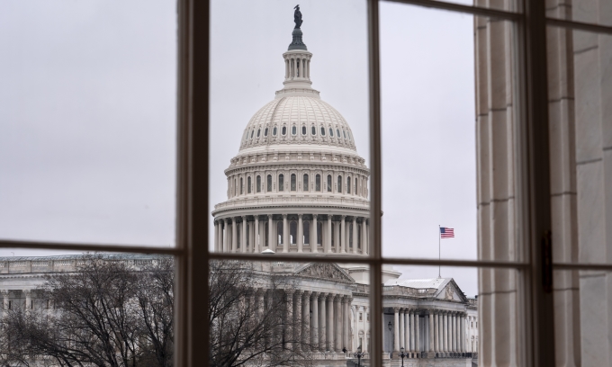 Tòa nhà quốc hội Mỹ ở thủ đô Washington ngày 13/2. Ảnh: AP