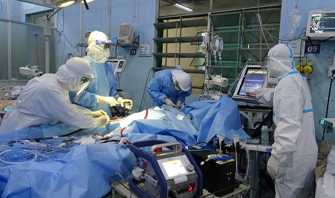 Bác sĩ Bệnh viện Quân y 175 can thiệp ECMO điều trị bệnh nhân Covid,năm 2021. Ảnh: Bệnh viện cung cấp