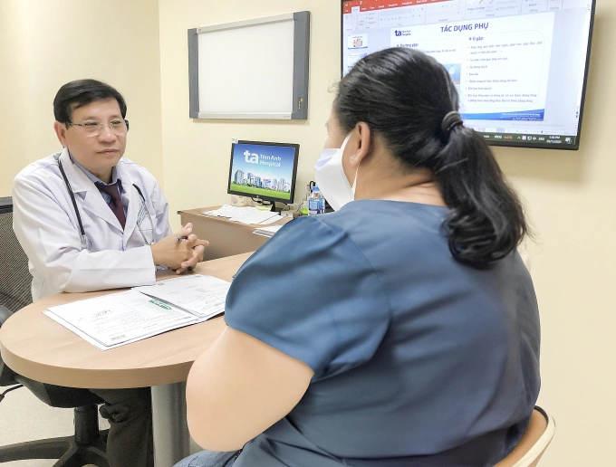 Bác sĩ Hoàng tư vấn phương pháp giảm cân cho chị Nguyệt Ảnh: Bệnh viện Đa khoa Tâm Anh