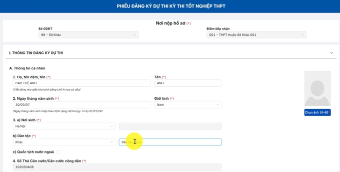 Giao diện trang đăng ký dự thi tốt nghiệp THPT. Ảnh: Chụp màn hình