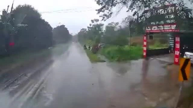 Tình huống giao thông: Trời mưa,tầm nhìn hạn chế,khi xe gắn camera hành trình vừa đi qua khúc cua thì chiếc xe container ở hướng ngược chiều đi tới khá nhanh. Phần đuôi của chiếc xe lớn vẩy sang làn đường ngược chiều,va vào xe gắn camera hành trình. Xe gây tai nạn tiếp tục di chuyển.