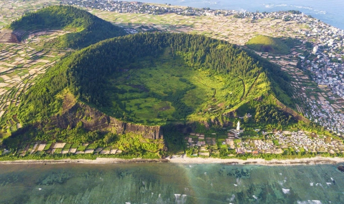Chùa Đục nằm dưới chân núi lửa Giếng Tiền. Ảnh: Bùi Thanh Trung
