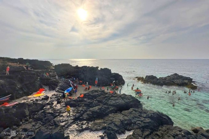 Du khách tham gia các hoạt động vui chơi tại đảo Bé đầu tháng 5/2025. Ảnh: Phạm Linh