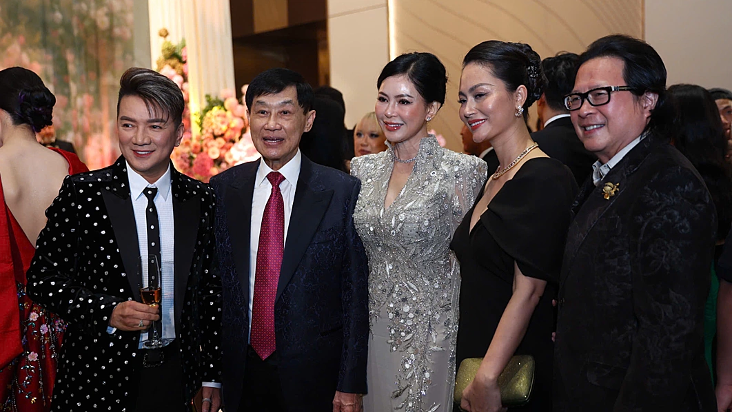 Doanh nhân Thủy Tiên cùng chồng đón tiếp quan khách tại tiệc cưới con gái. Video: Nhân vật cung cấp - Hoàng Dung
