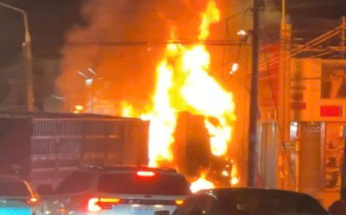 Xe container bốc cháy sau va chạm, bé trai 6 tuổi bỏng nặng