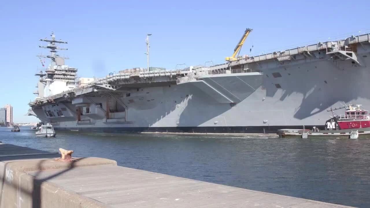 Tàu sân bay Eisenhower cập cảng tại nhà máy Norfolk,bang Virginia,Mỹ tháng 1/2025. Video: US Navy